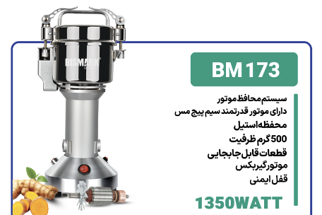 آسیاب صنعتی 150 گرمی بیسمارک مدل BM173 + گارانتی 24 ماهه کارت طلایی تعویض