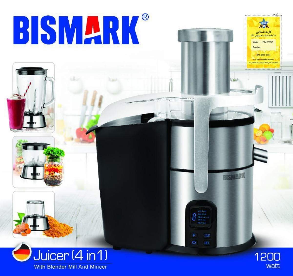 آبمیوه گیری بیسمارک مدل BM2390 ظرفیت ۱ لیتر ۴ کاره + گارانتی 24 ماهه کارت طلایی تعویض