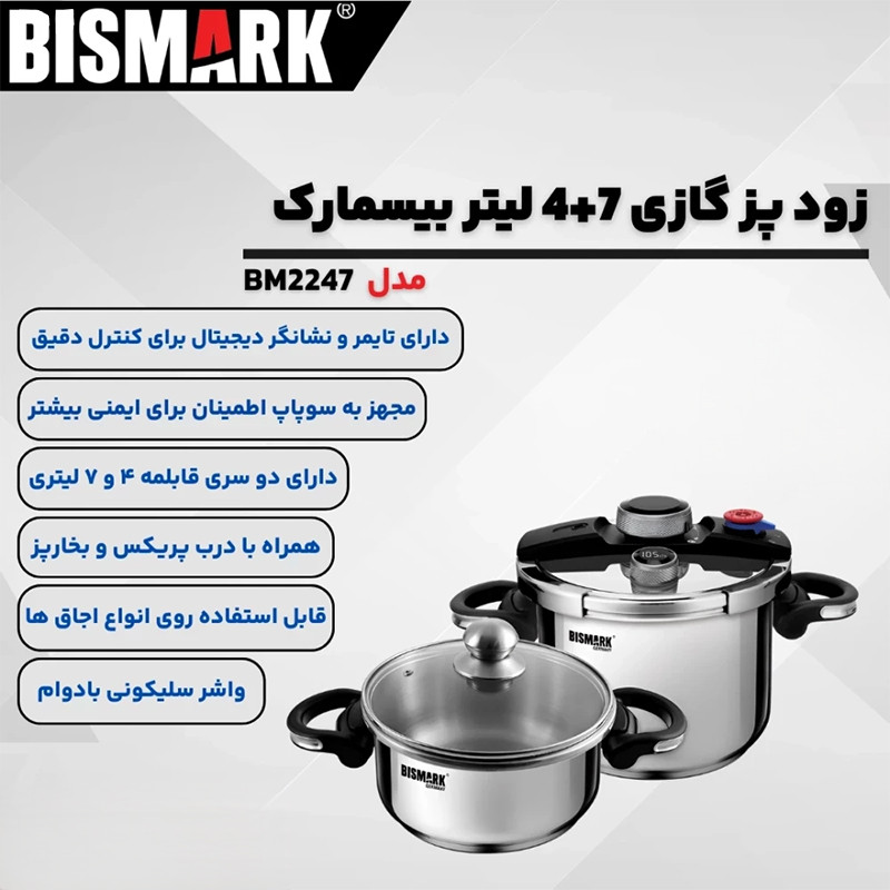 زودپز بیسمارک مدل BM2247 ظرفیت ۷ لیتر استیل ضد زنگ + گارانتی 24 ماهه کارت طلایی تعویض