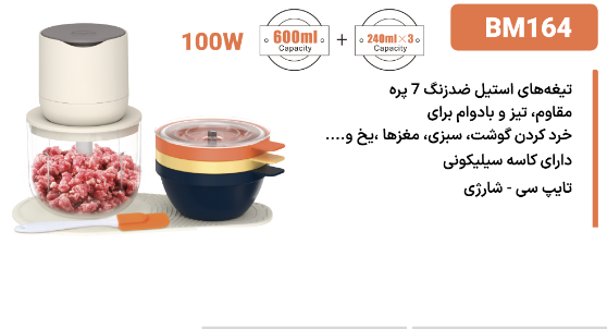 جواب 2: بله، تیغههای خردکن شارژی بیسمارک مدل BM164 قابل تعویض هستند و لوازم یدکی آن معمولاً در بازار و فروشگاههای معتبر موجود میباشد. - سوال 3: آیا این دستگاه برای خرد کردن گوشت یا مغزها مناسب است؟