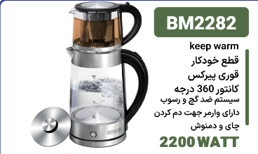 چای ساز بیسمارک مدل BM2282 ظرفیت ۱.۷ لیتر با کتری شیشهای + گارانتی 24 ماهه کارت طلایی تعویض