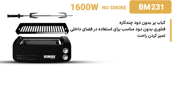 جواب 1: خیر، کباب پز برقی بیسمارک مدل BM231 به گونهای طراحی شده که با استفاده از تکنولوژی حرارت مستقیم و سینی چکه گیر، پختی کاملاً بدون دود و بو را ارائه میدهد و برای استفاده در محیطهای بسته بسیار مناسب است. - سوال 2: چگونه میتوانم دمای پخت را تنظیم کنم؟