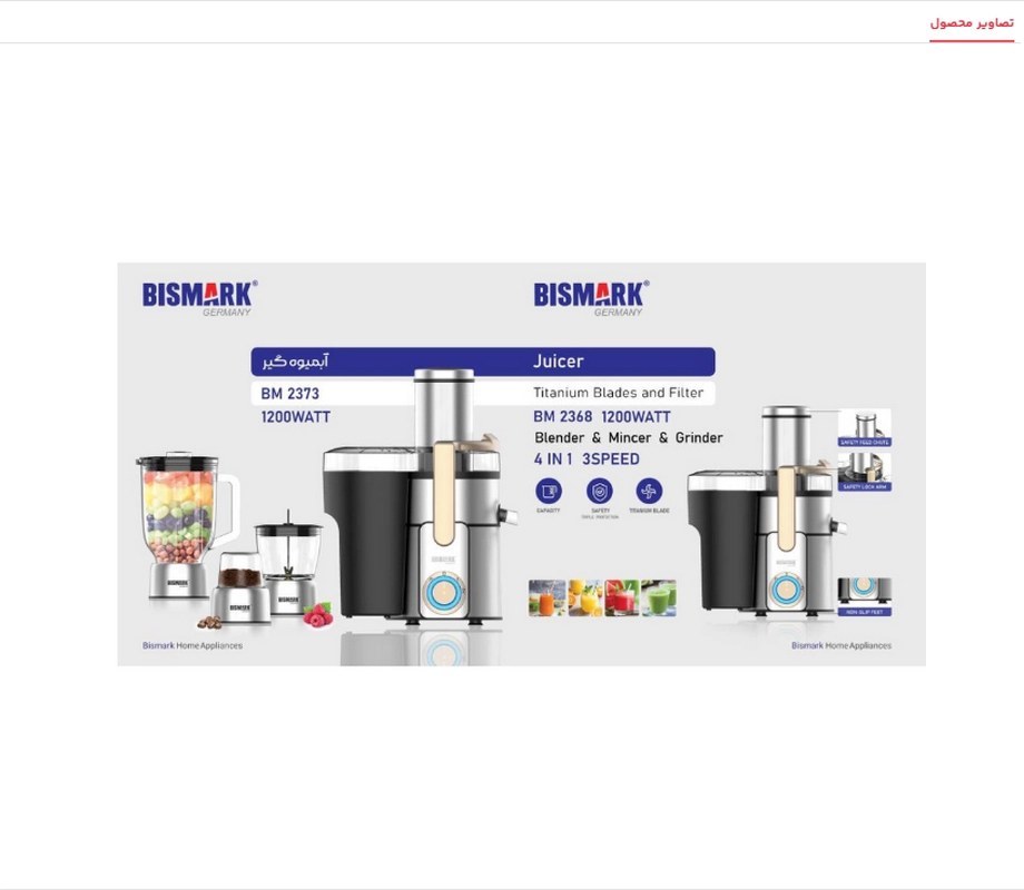 آبمیوه گیری 4 کاره بیسمارک مدل BM2373 + گارانتی 24 ماهه کارت طلایی تعویض