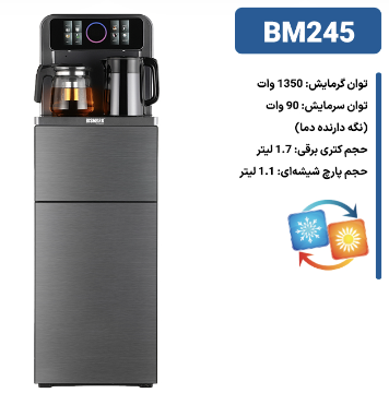 آبسردکن و چای ساز بیسمارک مدل BM245 ترکیبی هوشمندانه از دو دستگاه ضروری در یک پکیج شیک و مدرن است. با این محصول، در هر زمان به آب تصفیه شده خنک و چای داغ و تازه دسترسی خواهید داشت. طراحی ارگونومیک، مصرف انرژی بهینه و عملکرد قدرتمند، BM245 را به گزینهای ایدهآل برای منازل، دفاتر کار و فضاهای تجاری کوچک تبدیل میکند. از کیفیت و سهولت استفاده لذت ببرید و تجربهای متفاوت را به آشپزخانه خود هدیه دهید.