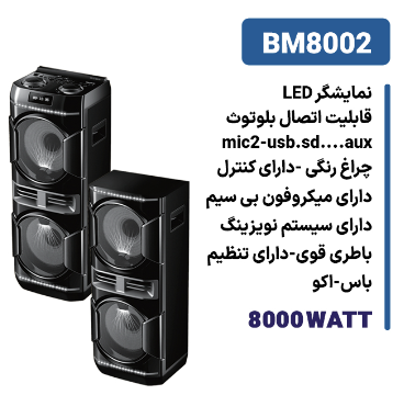 اسپیکر بلوتوثی دوقلو بیسمارک مدل BM8002 با طراحی شیک و صدای استریو قدرتمند، انتخابی ایدهآل برای دوستداران موسیقی است. این اسپیکرها با اتصال بیسیم TWS، تجربهای فراگیر از موسیقی را ارائه میدهند. حمل آسان، باتری با دوام و نورپردازی جذاب، BM8002 را به همراهی عالی برای مهمانیها و لحظات شما تبدیل میکند. از کیفیت صدای بینظیر بیسمارک لذت ببرید.