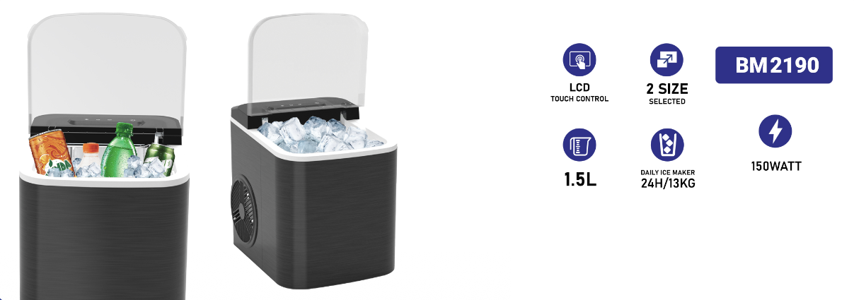 BM2190 با بهرهگیری از تکنولوژی پیشرفته، قادر است در مدت زمان کوتاهی (معمولاً کمتر از 10 دقیقه) اولین سری یخها را تولید کند. ظرفیت بالای مخزن آب و سطل یخ آن، تضمین میکند که برای مدت طولانی نیازی به پر کردن مجدد آب نخواهید داشت. همچنین، سیستم هشدار کمبود آب و پر شدن سطل یخ، استفاده از این دستگاه را بسیار آسان کرده است. یخهای تولیدی توسط این دستگاه، به شکل قالبی و شفاف هستند که جلوهای بینظیر به نوشیدنیهای شما میبخشند.
