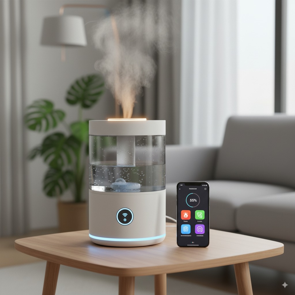 - کنترل از طریق اپلیکیشن: قابلیت روشن/خاموش کردن، تنظیم شدت بخار، زمانبندی فعالیت، تنظیم رطوبت هدف، و حتی تغییر رنگ چراغهای LED (در صورت وجود) از طریق گوشی هوشمند.
