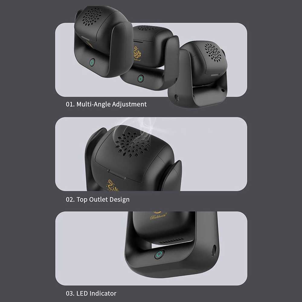 دمای ۷۰۰ °C در زمان ۲ دقیقه رایحه را بدون شعله یا دود آزاد میکند، سیستم راحتی برای پخش مؤثر رایحه مانند Oud یا Bakhoor. چرخش ۹۰ درجه به هوای متعادل در فضا کمک میکند. noon.com+1noon.com+1