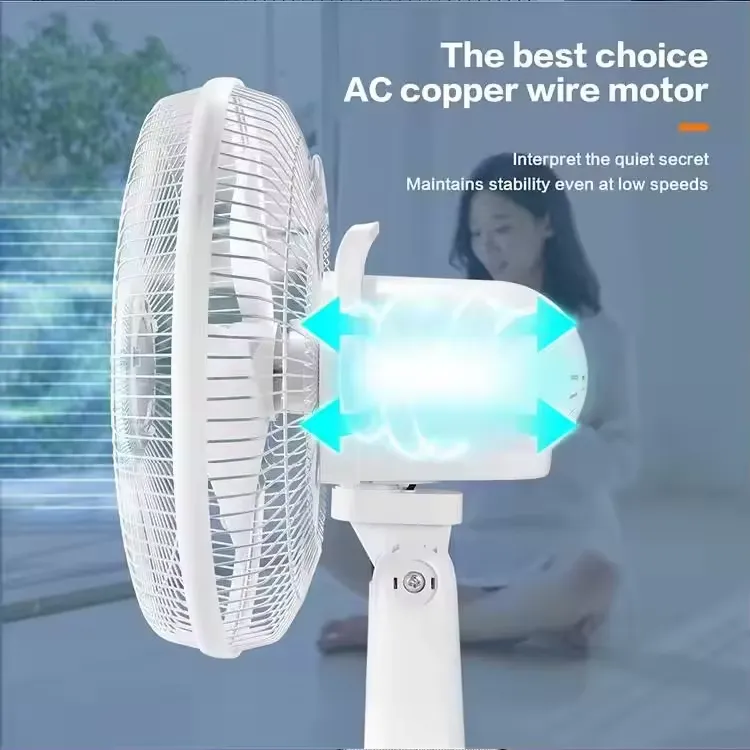 پنکه خورشیدی شارژی ۱۶ اینچ با باتری ۵۰۰۰mAh و چراغ LED