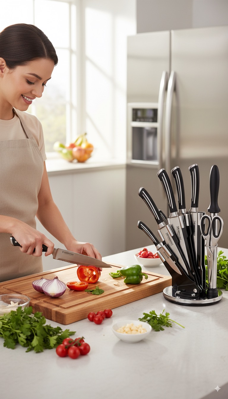 - چگونه میتوانم از زنگزدگی چاقوها جلوگیری کنم؟ برای حفظ کیفیت و جلوگیری از زنگزدگی، توصیه میشود پس از هر بار استفاده، چاقوها را بلافاصله با دست شسته و کاملاً خشک کنید. از قرار دادن طولانیمدت در ماشین ظرفشویی خودداری کنید.