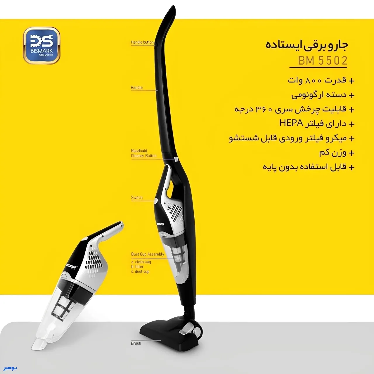 جارو شارژی بیسمارک مدل BM5502 + گارانتی ۲۴ ماهه بیسمارک سرویس