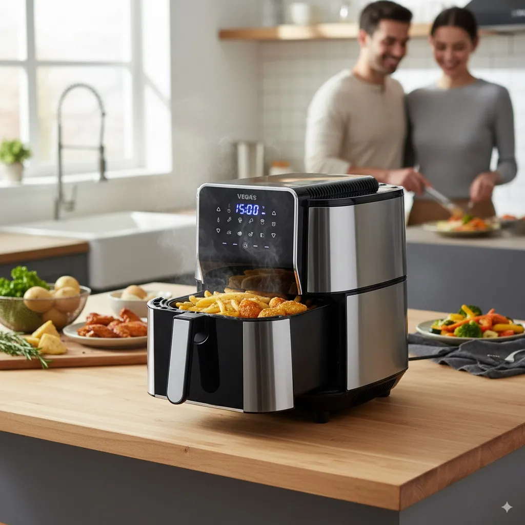 سرخکن وگاس مدل VAF1251 با ظرفیت 8 لیتر و توان 2200 وات، گزینهای عالی برای خانوادههای بزرگ است. این دستگاه با استفاده از تکنولوژی هوای داغ (Air Fry) امکان پخت غذاها را بدون نیاز به روغن زیاد فراهم میکند، که موجب کاهش چربی و کالری غذاها میشود.