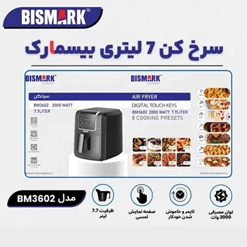 | بیسمارک BM3602 | 7 لیتر | 2000 وات | 7,400,000 تومان | کنترل دیجیتال لمسی، سبد نچسب دولایه |