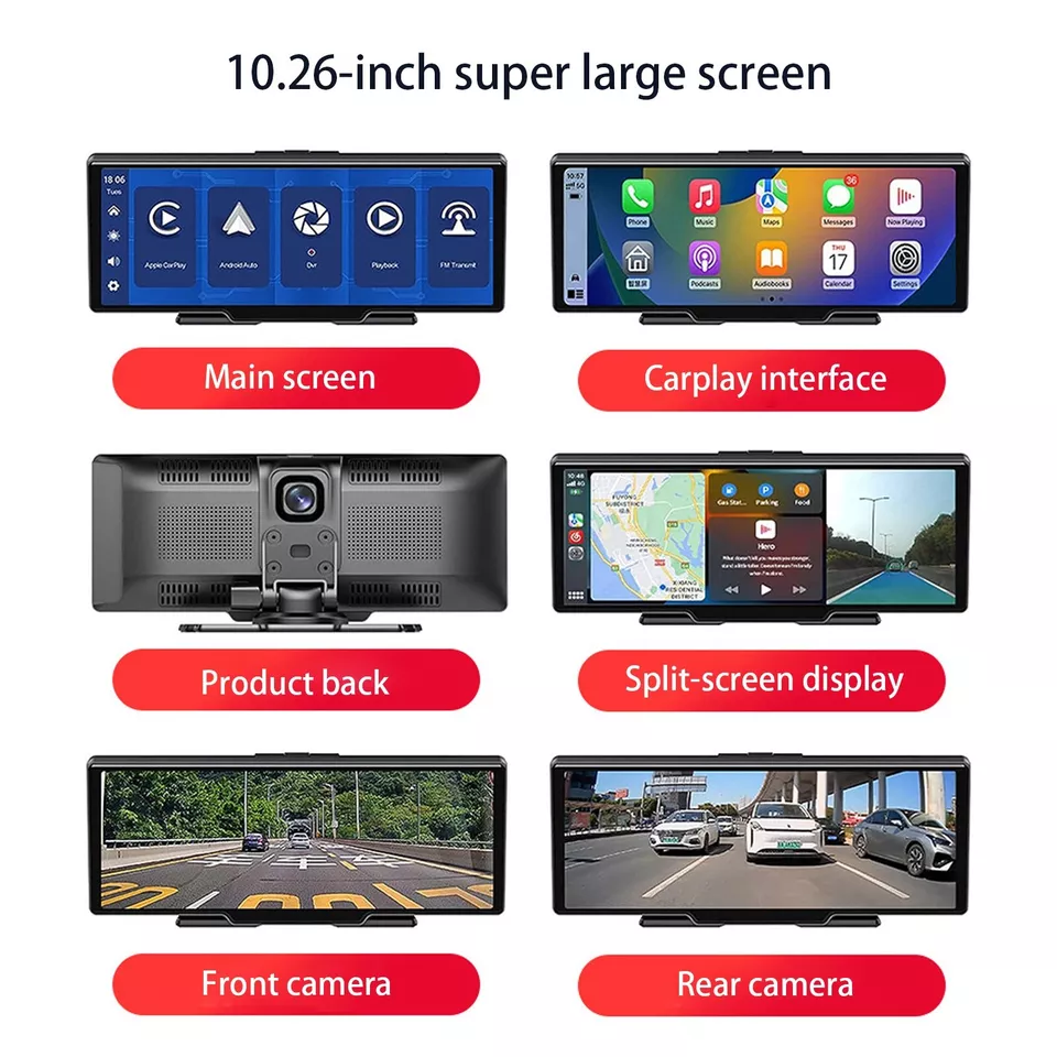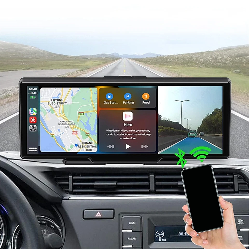 دوربین ثبت وقایع خودرو DrivePlay Pro 2.0 با صفحه لمسی10اینچی، CarPlay بیسیم، دوربین جلو و عقب، ضبط ویدیوی 2K