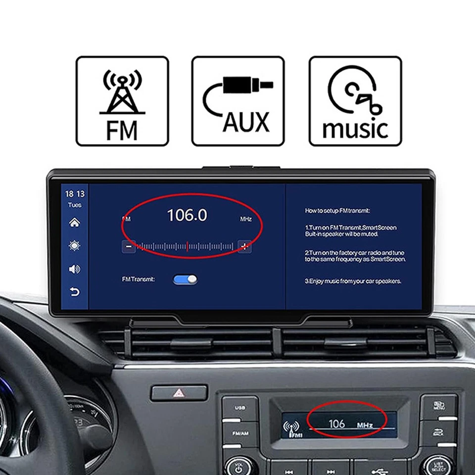 Smart Dash Cam with Touchscreen & Wireless CarPlay – DrivePlay Pro 2.0 with Front and Rear Camera, 24/7 Recording, and Android Auto Support