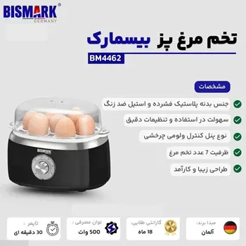 تخممرغپز بیسمارک مدل BM4462 – ظرفیت ۷ عددی، توان ۴۰۰ وات، طراحی کامپکت + گارانتی 24 ماهه بیسمارک سرویس